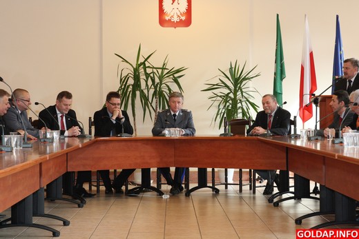 Wczoraj w sali konferencyjnej Urzędu Miejskiego w Gołdapi doszło do spotkania wojewody warmińsko Mariana Podziewskiego, komendanta wojewódzkiego policji Józefa Gdańskiego i jego zastępcy Krzysztofa Marzewskiego, komendanta powiatowego Andrzeja Żylińskiego, funkcjonariuszy gołdapskiej policji i władz samorządowych. Była to pierwsza wizyta Józefa Gdańskiego w Gołdapi, który w lutym został komendantem wojewódzkim policji w Olsztynie. Podczas niej zwiedził nasze miasto i okolice, ale też obejrzał obecną siedzibę gołdapskich funkcjonariuszy.