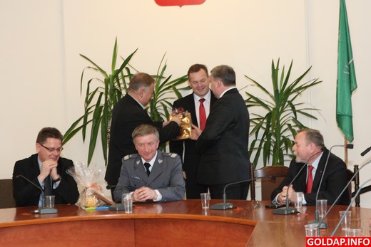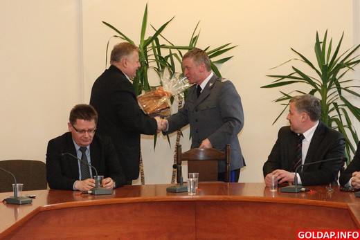 Komendant wojewódzki swoją wizytę określił jako gospodarską. W kilkudziesięciominutowym wystąpieniu przedstawił się funkcjonariuszom, określił też ramy, w jakich chciałby z nimi współpracować . Nie owijał przy tym nic w przysłowiową bawełnę, mówiąc wprost, co planuje zmienić, co mu się podoba lub nie i czego oczekuje od swoich podwładnych. Podziękował też gołdapskim policjantom za dobre efekty pracy w minionym roku, a przedstawicielom władz samorządowych za okazywane wsparcie, nie tylko finansowe. Wspomniał też o budowie nowej komendy.