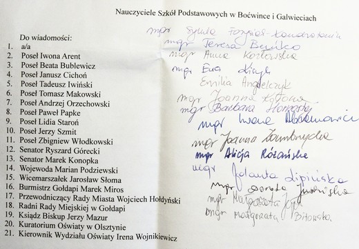 Liczba nauczycieli, którzy podpisali pismo zwiekszyłą się o 2 kolejnych. Oto aktualna, pełna lista.