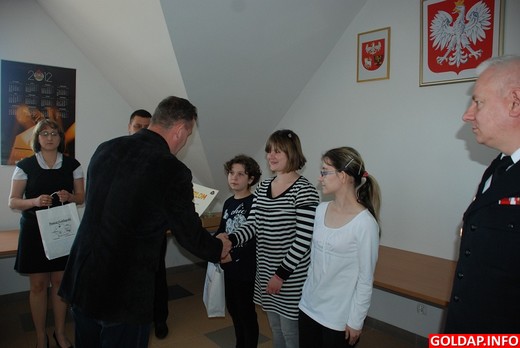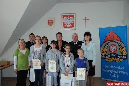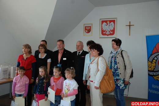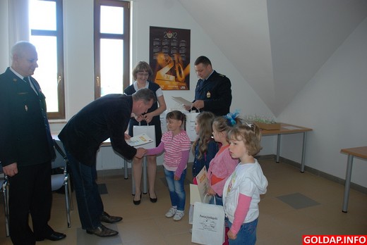 Uroczyste wręczenie nagród, dyplomów i podziękowań odbyło się 9 maja br. w Komendzie Powiatowej Państwowej Straży Pożarnej w Gołdapi. Zwycięzcy odebrali nagrody z rąk starosty gołdapskiego Andrzeja Ciołka oraz komendanta powiatowego Państwowej Straży Pożarnej w Gołdapi mł. bryg. Krzysztofa Giedrojcia. Laureaci konkursu zwiedzili strażnicę, obejrzeli sprzęt strażacki, dowiedzieli się wiele o pracy strażaka oraz mieli okazję przejechać się podnośnikiem hydraulicznym, co okazało się największą frajdą.