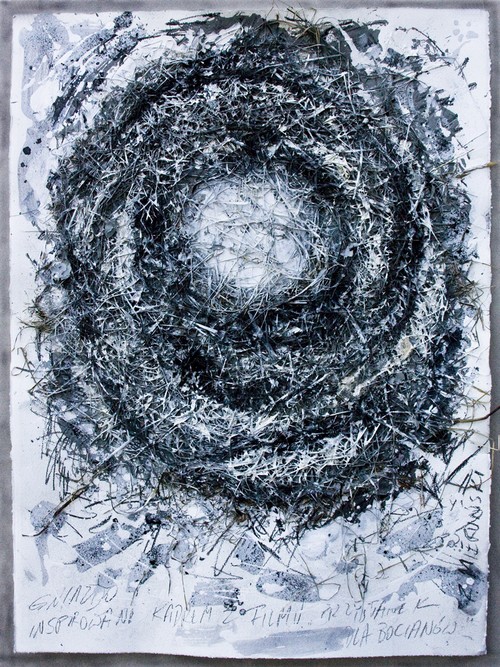 Prace prezentowane na wystawie to artystyczne poszukiwanie tożsamości autora. Rysunki i obrazy powstały w latach 2011-2012. Zbigniew Mieruński wykorzystuje różnorodne techniki od ascetycznych rysunków węglem i tuszem na papierze czerpanym, po strukturalne prace z wykorzystaniem korzeni, kawałków drewna, siana, konstrukcji drewnianych i traktowanych jak płaskorzeźba elementów obrazów.