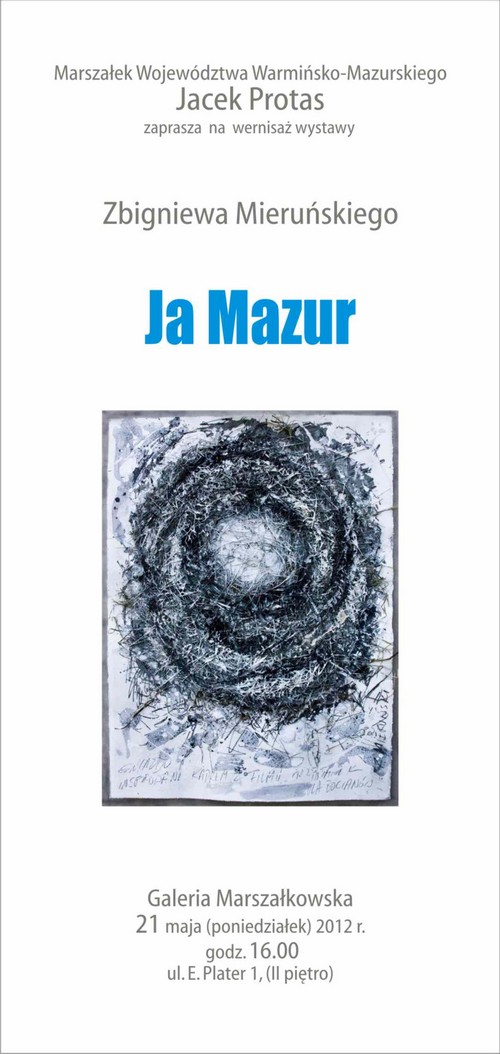 21 maja o 16.00 w Galerii Marszałkowskiej znajdującej się w Urzędzie Marszałkowskim w Olsztynie otwarta zostanie wystawa prac gołdapianina Zbigniewa Mieruńskiego pt. „Ja Mazur".