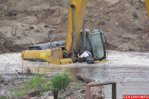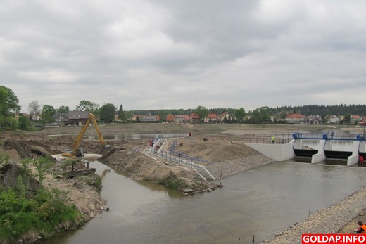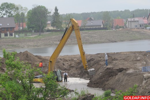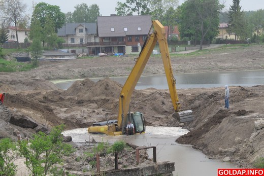Ciężkie zadanie czeka w najbliższych godzinach przed pracownikami budującymi gołdapski zalew. Jedna z koparek znalazła się bowiem częściowo pod wodą. Obecnie trwają próby jej wyciągnięcia na ląd.