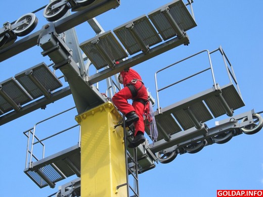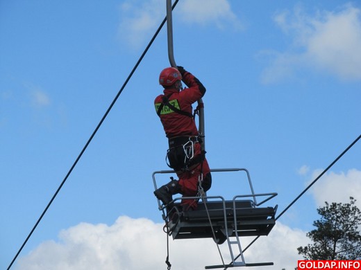 Dziś odbyły się kolejne ćwiczenia strażaków należących do Specjalistycznej Grupy Ratownictwa Wysokościowego „Gołdap". Między 9.30 a 10.30 na Pięknej Górze szkolili swoje umiejętności z zakresu udzielania pomocy w razie awarii wyciągu krzesełkowego.