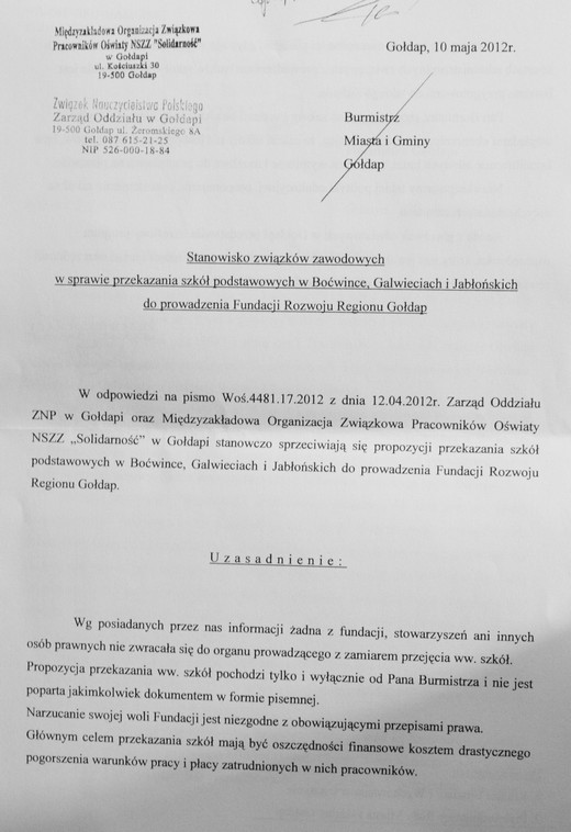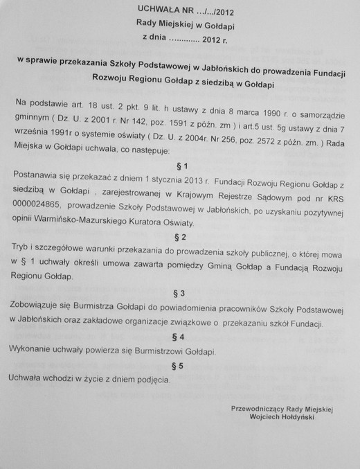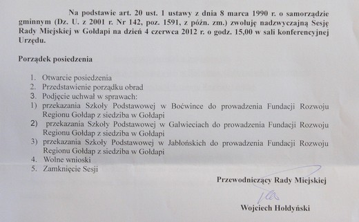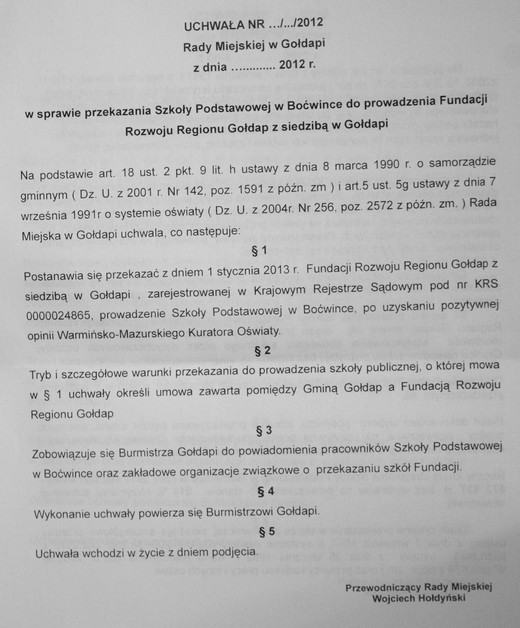 W poniedziałek, 4 czerwca Rada Miejska podejmie ostateczną decyzję, czy przekaże do prowadzenia dla Fundacji Rozwoju Regionu Gołdap szkoły podstawowe w Boćwince, Galwieciach i Jabońskich. Nadzwyczajna sesja odbędzie się w sali konferencyjnej Urzędu Miejskiego, początek o godzinie 15.00.