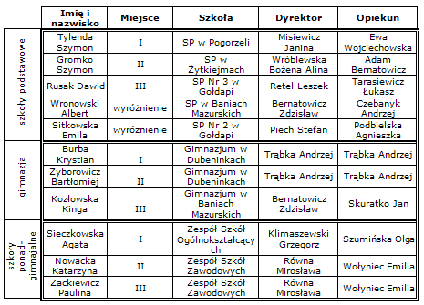 Oprócz uczniów nagrodzeni zostali również opiekunowie, którzy prowadzą lekcje wychowania fizycznego ze sportowcami. Puchary, medale oraz nagrody rzeczowe wręczyli starosta gołdapski Andrzej Ciołek i przewodniczący rady Leszek Retel. Organizatorem konkursu "Młody Sportowiec Roku" było Starostwo Powiatowe w Gołdapi.