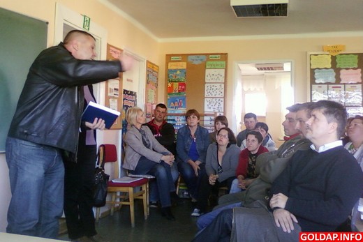 Wczoraj w Szkole Podstawowej w Galwieciach odbyło się spotkanie nauczycieli i mieszkańców wsi z burmistrzem Markiem Mirosem, zastępcą skarbnika gminy Piotrem Komockim i szefową wydziału oświaty w UM Ireną Wojnikiewicz. Uczestniczyło w nim też 4 radnych: Marcin Przystawski, Jan Steć, Jarosław Dzienis i Tomasz Luto. Dotyczyło oczywiście planowanego przekazania miejscowej szkoły pod zarząd fundacji.
