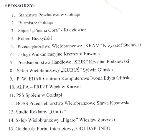 Rodzinny rajd rowerowy odbył się dzięki wsparciu sponsorów, którymi byli: