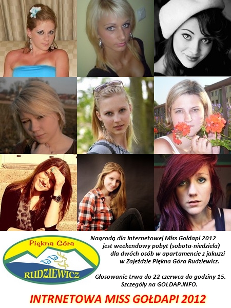 Jeszcze przez nieco ponad tydzień można głosować na kandydatki do tytułu Internetowej Miss Gołdapi 2012. Łącznie w walce o tytuł bierze obecnie dziewięć dziewcząt. Aktualnie na prowadzeniu jest Luiza Okinczyc z Gołdapi.