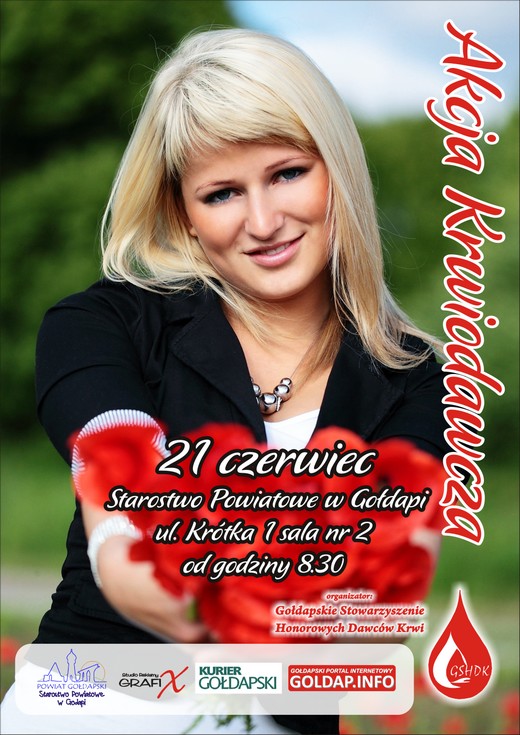 Jutro odbędzie się kolejna akcja krwiodawcza, organizowana przez Gołdapskie Stowarzyszenie Honorowych Dawców Krwi. Uwaga! Zmienia się miejsce poboru krwi. W tym miesiącu akcja odbędzie się w Starostwie Powiatowym, sala nr 2.