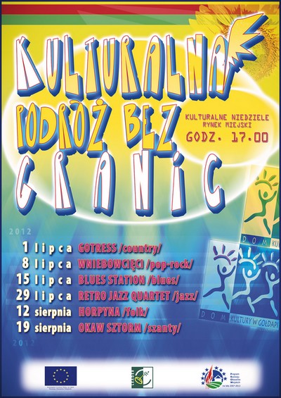 Dom Kultury w Gołdapi rozpoczyna realizację projektu pt. "Kulturalna Podróż Bez Granic". Będzie to cykl imprez prezentujących różne style muzyczne. Koncerty odbywać się będą na rynku miejskim w Gołdapi o godz. 17.00 przez 6 niedziel w lipcu i sierpniu.