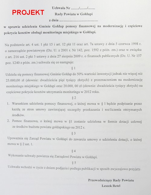 45 tysięcy złotych ma być przekazane ze środków powiatu gołdapskiego na dofinansowanie monitoringu miejskiego. 25 tysięcy przeznaczone zostanie na pokrycie kosztów związanych z utworzeniem dodatkowego punktu obserwacyjnego w Urzędzie Miejskim, zaś 20 tysięcy na koszty jego obsługi w br. Projekt uchwały w tej sprawie pozytywnie zaopiniował w ubiegłym tygodniu Zarząd Powiatu. Teraz trafi on pod obrady komisji oraz Rady Powiatu.