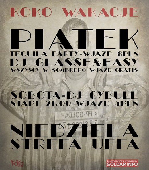 W zaprzyjaźnionym z nami klubie Koko Chanel ruszyły „Koko wakacje". Dziś do wspólnej zabawy zaprasza DJ Glass&Easy, jutro DJ Cybull. W niedzielę zaś zapraszamy do wspólnego oglądania finału piłkarskich Mistrzostw Europy.