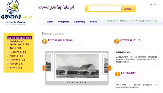 goldapiaki.pl to projekt, który od ubiegłego roku realizowało stowarzyszenie „Fabryka Cudów". Polegał on na stworzeniu strony internetowej, na której zostałyby przedstawione historie ludzi, którzy tworzyli i tworzą społeczeństwo Gołdapi i okolic.