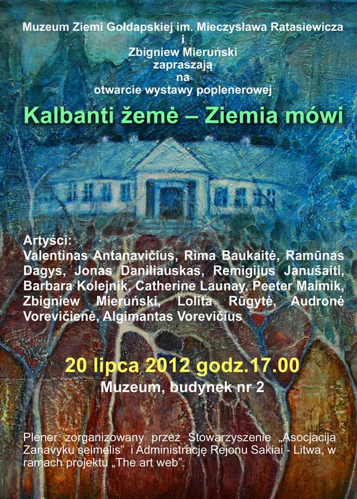 Muzeum Ziemi Gołdapskiej i Zbigniew Mieruński zapraszają 20 lipca o godzinie 17.00 na otwarcie wystawy poplenerowej pt. „Ziemia mówi". Wernisaż odbędzie się w budynku nr 2 muzeum.