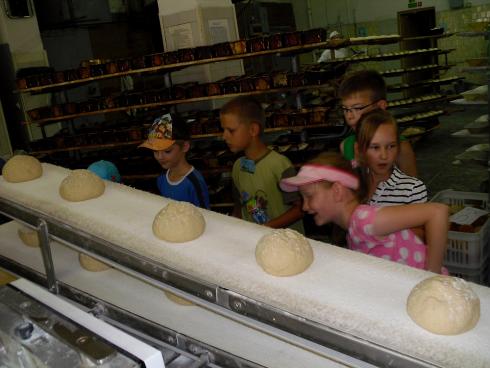 Chleb, bułeczki, sękacze i inne pieczywo - ich wykonanie poznały dzieci, będąc w jednej z gołdapskich piekarni a mianowicie PSS „Społem". Z zaciekawieniem patrzyły, jak powstaje chleb i w jakim piecu jest pieczony. Obserwowały jak piekarze w białych fartuchach robią rogaliki, bułeczki i inne słodkości. W czasie pobytu w piekarni dzieci poznały zapachy świeżo pieczonego sękacza. Największą frajdą i niespodzianką było wspólne jedzenie bochenka chleba prosto z wyjętego pieca - gorącego aż dzieci nie mogły utrzymać w rączkach - konsumpcja nastąpiła po chwili przestygnięcia. Wiadomo że dzieci uwielbiają słodkości i dlatego panie z piekarni poczęstowały wszystkie dzieci ptasim mleczkiem, które bardzo smakowało. W drodze powrotnej z wycieczki dzieci przechodząc przez park po remoncie skorzystały z możliwości ochłodzenia pod nowo tryskającymi fontannami. Uśmiechnięte i syte wróciły do biblioteki, pytając o następną wyprawę w teren. Wycieczka odbyła się 26 lipca w której uczestniczyło 13 dzieci z opiekunami grupy.
