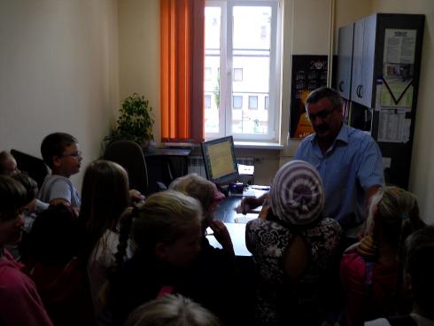 W upalne przedpołudnie 25 lipca uczestnicy „Wakacji w Bibliotece" w liczbie 12 osób, udali się na spacer. Oczywiście celem było dostarczenie własnoręcznie wykonanych prac przez dzieci dla strażaków w podziękowaniu za zwiedzanie straży w ubiegłym tygodniu. Dzieci malowały i rysowały to wszystko, co widziały w straży. Dodatkowym prezentem dla strażaków przygotowanych przez dzieci były wierszyki, które dzieci same napisały. Mile zaskoczeni strażacy oczywiście w odzewie za niespodziankę pokazali zjazd na rurze oraz samochód straży. W drodze powrotnej pełni energii i uśmiechnięte dzieci odwiedziły Muzeum Ziemi Gołdapskiej gdzie z zainteresowaniem oglądały muzeum, słuchając opowieści o pochodzeniu eksponatów. Oczywiście kolejny dzień minął miło i wesoło.