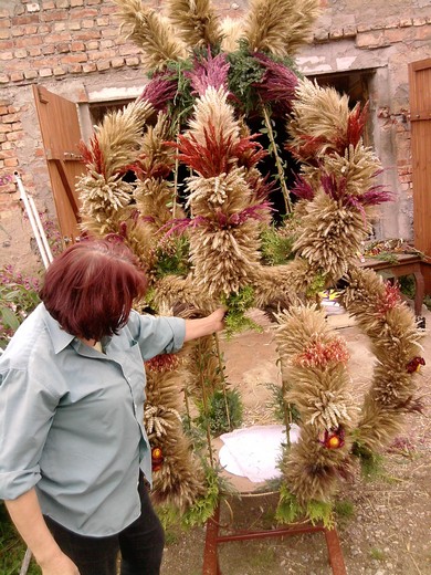 Praca nad wieńcem pochłonęła dużo czasu i wysiłku. Osobą, która włożyła w pracę najwięcej serca była pomysłodawczyni sołtys Danuta Szermińska. Wraz z nią współpracowała grupa mieszkańców: