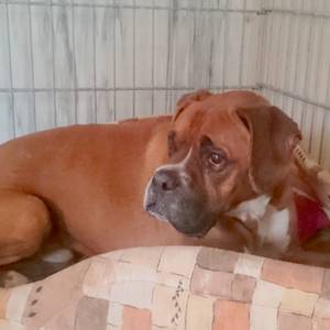 GOŁDAP. Dziś w centrum Gołdapi został znaleziony pies rasy bokser. Szwendał się cały obolały, słaniając się wyczekiwał wsparcia od przechodniów.
