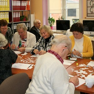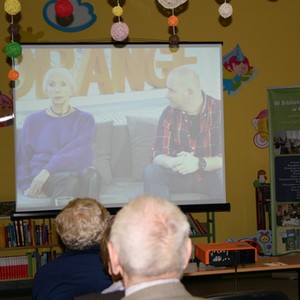 GOŁDAP. W minione czwartkowe przedpołudnie seniorzy z gołdapskiego Uniwersytetu Trzeciego Wieku spotkali się w czytelni dla dzieci, aby wspólnie obejrzeć transmisję online z panią Heleną Norowicz oraz z panem Tomaszem Kozłowskim.