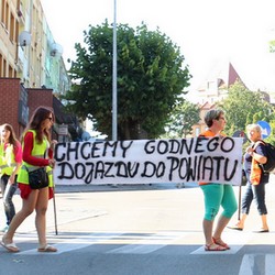 GOŁDAP. Mieszkańcy gminy Banie Mazurskie nie odpuszczają i coraz ostrzej walczą o remont drogi powiatowej 1815N na odcinku Rogale – Rapa – Mieduniszki. Dziś prawie siedemdziesiąt osób przyjechało do Gołdapi, by manifestować tej sprawie. Przez cztery godziny, od 8.00 do 12.00 blokowane było rondo w centrum miasta.