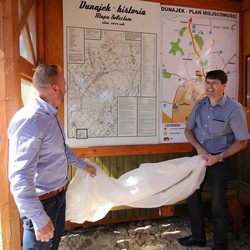 DUNAJEK. W miniony piątek w Dunajku uroczyście odsłonięta została tablica historyczna. Przedstawiona na niej jest mapa sołectwa według stanu na rok 1944. Pod nią jest przedstawiona historia miejscowości.