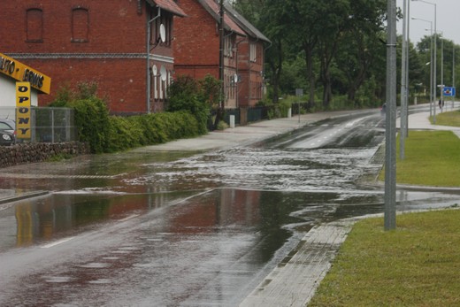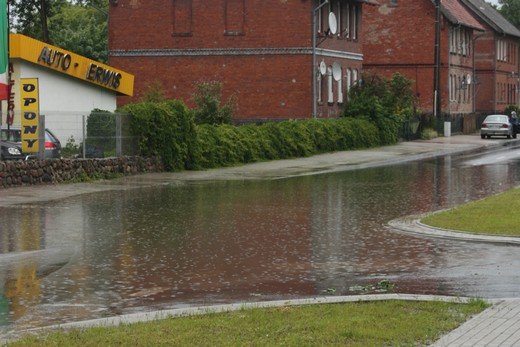 GOŁDAP. Tak wygląda stan nowo wyremontowanej ulicy Kolejowej po sobotnim 10-minutowym deszczu. Aż strach pomyśleć co by było po godzinnej ulewie. Chyba coś nie tak zostało zrobione podczas przebudowy.