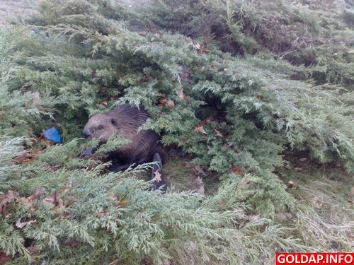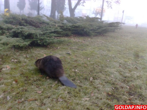 Dziś rano wracając z nocnej zmiany mieliśmy w Gołdapi spotkanie z nietypowym "gościem", którym był bóbr. Kręcił się w okolicach ul. Wojska Polskiego. Przesyłam parę fotek z tego spotkania :) Zostały one zrobione, gdy bóbr "Rysio" schował się w tujach naprzeciwko Biedronki.