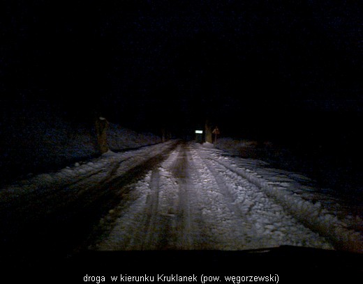 Wszyscy tak krytykują Zarząd Dróg Powiatowych za brak nadzoru i nieodśnieżone drogi, ale dzisiaj drogowcy nie zawiedli. Jadąc z Giżycka często korzystam z najkrótszej trasy czyli przez Kruklanki, Banie Mazurskie do Gołdapi. Wczesna pora, około 6.00, pada śnieg. Droga w powiecie giżyckim kiepska. Wpadam do powiatu węgorzewskiego - TRAGEDIA. Myślę sobie no to kicha, dalej pewnie będzie gorzej. Zbliżając się do tablicy rozpoczynającej powiat gołdapski przeżywam szok i miłe zaskoczenie. Cała droga przez Grodzisko, Banie Mazurskie i nawet Jabłońskie odśnieżona i posypana. Przesyłam kilka zdjęć dla porównania z wieczornej drogi powrotnej.