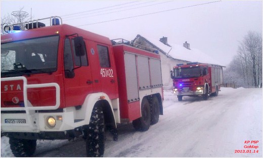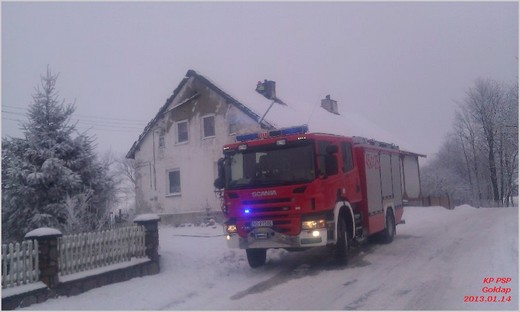 Kilka minut po godzinie 13 dyżurny Państwowej Straży Pożarnej otrzymał informację o pożarze w domu we Wrotkowie. Przybyli na miejsce strażacy stwierdzili, że palą się belki stropowe przy kominie. Szybko je ugaszono, m.in. dlatego, że pożar został w porę zauważony.