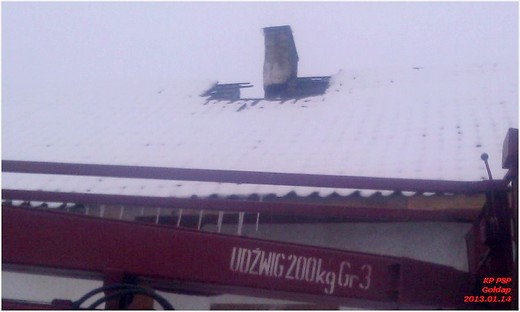 Strażacy zalecili właścicielowi domu, by nie rozpalał pieca centralnego ogrzewania zanim kominiarz nie wykona przeglądu komina. Pomogli też zabezpieczyć rozebraną część dachu.
