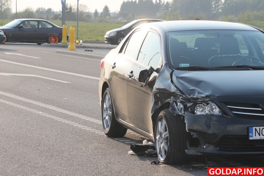 GOŁDAP. Do kolizji dwóch samochodów osobowych na skrzyżowaniu ul. Wojska Polskiego i obwodnicy doszło dziś po godzinie 17. Kierujący mazdą jechał od strony Olecka. Na skrzyżowaniu skręcając w lewo zagapił się i nie zauważył jadącej prosto od strony granicy toyoty. Kierowca tego auta próbował uniknąć zderzenia odbijając w lewo, ale niestety zaczepił o tył mazdy.