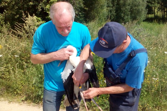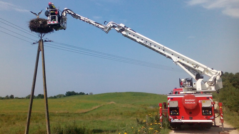 JABŁOŃSKIE. Nietypowa akcja miała miejsce dziś w Jabłońskich. Pomocy potrzebował młody bocian, którego nogę unieruchomił sznurek znajdujący się w gnieździe. Na szczęście pomoc przyszła w porę. Mieszkańcy wsi dziękują straży pożarnej, pracownikom pogotowia energetycznego i weterynarzowi za błyskawiczną reakcję na zgłoszenie.