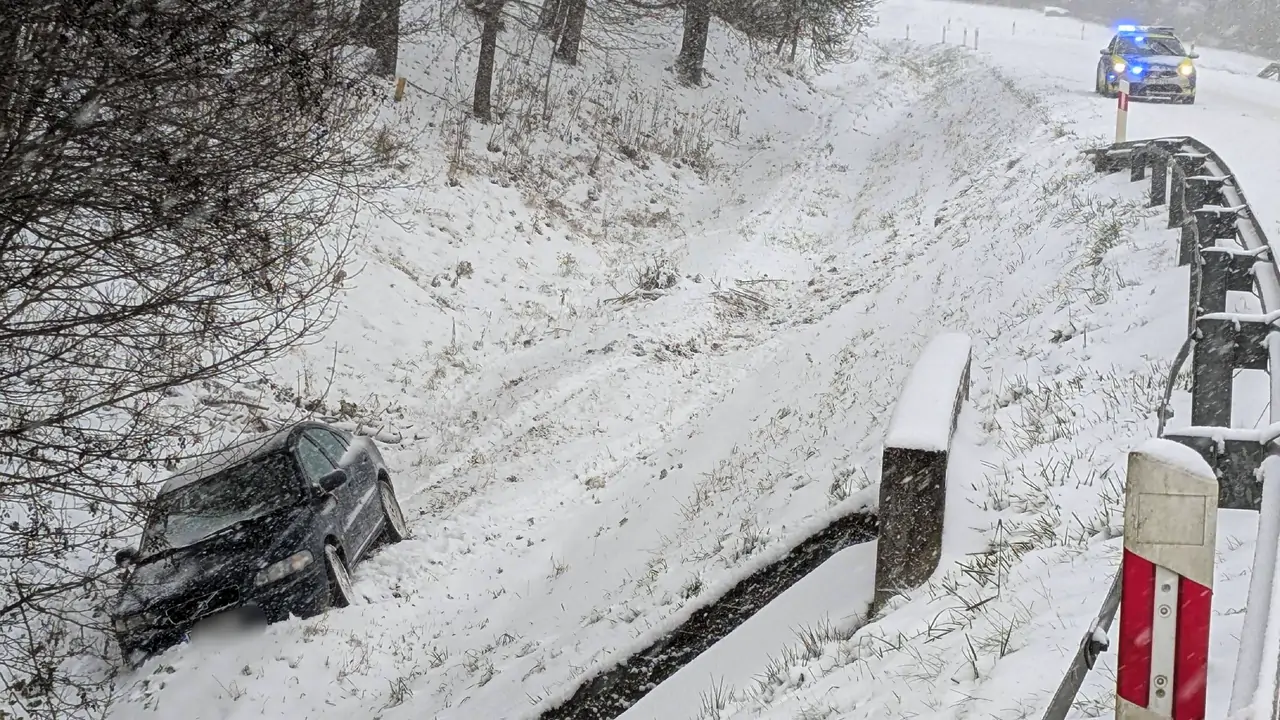 Kierujący osobowym volvo nie zachował należytej ostrożności podczas kierowania, wpadł w poślizg i zjechał do przydrożnego rowu.