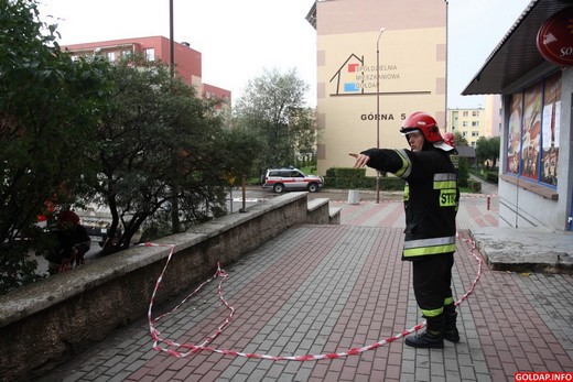 Przez kilkadziesiąt minut zablokowana była dziś ulica Górna i część pobliskiego terenu obok bloku nr 5. Pracownik Spółdzielni Mieszkaniowej zauważył przy śmietnikach pozostawiony zbiornik z kartką, że jest to trucizna. O 13.37 powiadomił o tym straż pożarną.