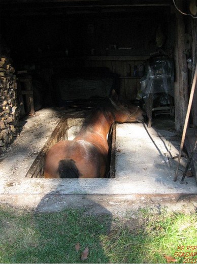 Wczoraj około godziny 13 w Jurkiszkach chodząca luzem źrebna klacz wpadła do kanału naprawczego w jednym z budynków. Potrzebna byłą interwencja straży pożarnej, która aby wydostać klacz stopniowo wsypywała do kanału mieszankę ze słomy i żwiru. W ten sposób udało się usypać podłoże na taką wysokość, że zwierzę mogła samodzielnie wyjść. Klaczy nic poważnego się nie stało, weterynarz stwierdził u zwierzęcia niegroźne otarcia.