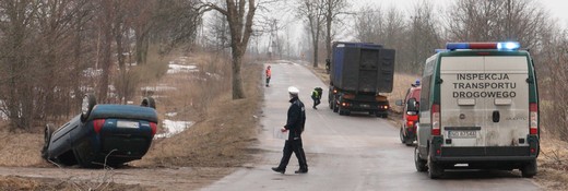 Jadący ciężarówką od strony Gołdapi 47-letni mężczyzna jeszcze będąc na zakręcie postanowił wyprzedzić jadący przed nim samochód osobowy. Okazało się jednak, że z przeciwka jedzie Renault Clio. Prowadząca je kobieta chcąc uniknąć zderzenia ze Scanią zjechała na prawe pobocze. Niestety, uderzyła w przepust i dachowała. Została odwieziona do szpitala. Jej obrażenia na szczęście nie są bardzo poważne. Kierowcę ciężarowego samochodu policjanci ukarali 400zł mandatem.