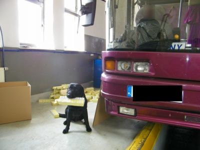 Pies żywo zareagował podczas sprawdzania części sypialnej pojazdu. Jednak zanim celnicy wydobyli kontrabandę natknęli się na dość niezwykły mechanizm. Skrytka zabezpieczona była urządzeniem ryglującym, które uruchamiane było pilotem. Dopiero po wciśnięciu odpowiednich przycisków funkcjonariusze dotarli do towaru - 1140 paczek papierosów. Do kontrabandy przyznał się kierowca autobusu, który w ramach dobrowolnego poddania się odpowiedzialności do kasy oddziału celnego wpłacił karę w wysokości 20.000 złotych.