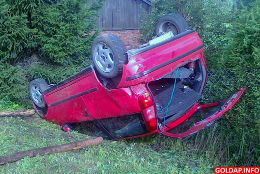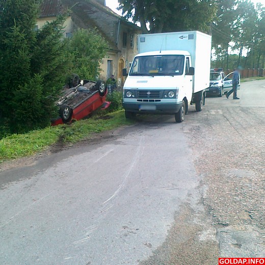 Około godziny 7 na jedynym skrzyżowaniu w Juchnajciach doszło do wypadku. Samochód ciężarowy jadąc od strony Rożyńska Małego wymusił pierwszeństwo przejazdu. Kierujący fiatem punto, jadąc drogą z pierwszeństwem od strony Rogal chciał uniknąć zderzenia i odbił kierownicą w bok. Niestety, samochód dachował. Na szczęście nic nikomu się nie stało. Okoliczności zdarzenia wyjaśniają policjanci.