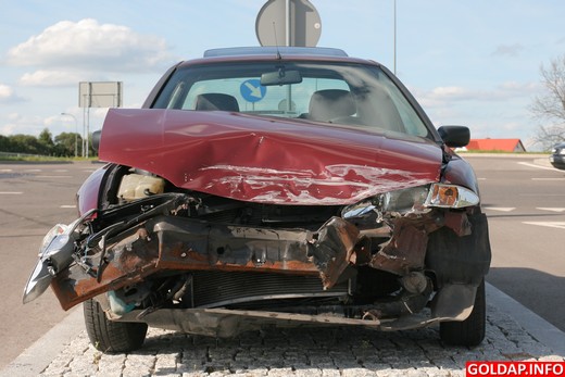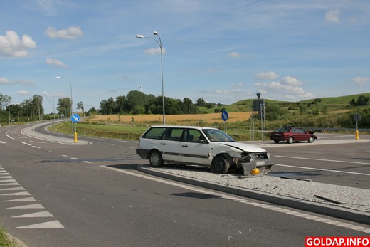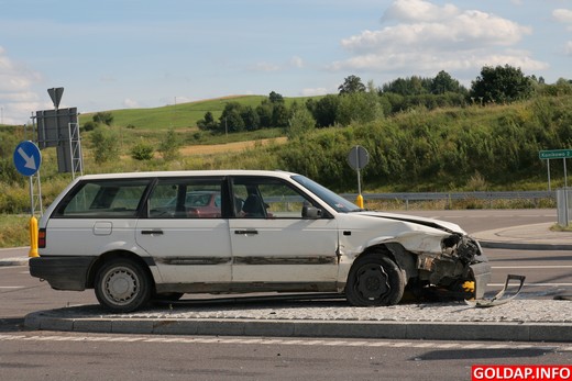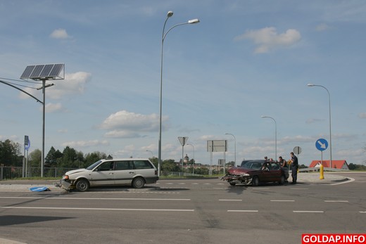 Około godziny 16 na skrzyżowaniu ulicy Warszawskiej i obwodnicy Gołdapi doszło do kolizji dwóch samochodów osobowych. Kierujący fordem modeno wyjeżdżając z ulicy Warszawskiej nie ustąpił pierwszeństwa volkswagenowi passatowi jadącemu od strony Jabramowa i doszło do zderzenia.