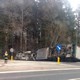Pobocze drogi nie wytrzymało ciężaru ciągnika siodłowego i naczepy. Zestaw się przewrócił.