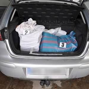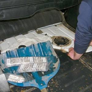 POWIAT GOŁDAPSKI. W ubiegłym tygodniu strażnicy graniczni z Gołdapi podczas kontroli volkswagena golfa w bagażniku pojazdu ujawnili dwa worki wypełniane wyrobami tytoniowymi.