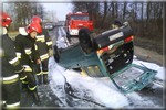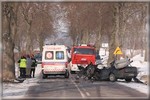 Około godziny 11.30 mężczyzna jadący Oplem Omegą od strony Grabowa w kierunku Gołdapi, chwilę po minięciu Zajazdu pod Piękną Górą stracił panowanie samochodem, wpadł w poślizg i uderzył w drzewo. Wezwani na miejsce strażacy rozcięli dach auta i wyciągnęli nieprzytomnego 29-latka. Jechał sam. Karetką został przewieziony na targowicę, skąd zabrało go pogotowie lotnicze do szpitala w Suwałkach.