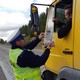 Pobocze drogi nie wytrzymało ciężaru ciągnika siodłowego i naczepy. Zestaw się przewrócił.