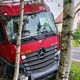 Pobocze drogi nie wytrzymało ciężaru ciągnika siodłowego i naczepy. Zestaw się przewrócił.