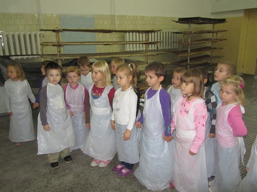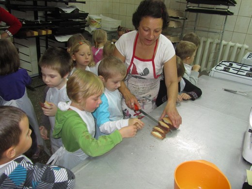 W środę, 3 października pięciolatki „c" ze Szkoły Podstawowej nr 3 w Gołdapi zwiedziły jedną z gołdapskich piekarni. Podczas tej wycieczki dzieci miały możliwość zobaczyć, jak wygląda piekarnia od środka. Mogły zapoznać się z tym, jak wygląda przygotowanie ciasta na chleb i jak wyglądają piece do jego wypieku. Widziały, jak gotowy upieczony chleb jest wyjmowany za pomocą specjalnej łopaty, układany na specjalnym „piętrowym" wózku i zraszany wodą. Wiadomo, że dzieci uwielbiają słodkości i dlatego panie z piekarni poczęstowały wszystkie smakołykami. Dziękujemy pracownikom piekarni PSS „Społem" za okazaną gościnność i bardzo miłą atmosferę.