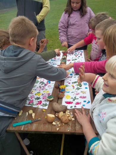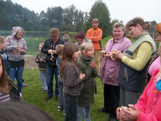 W miniony wtorek rodzice i uczniowie klas I-III ze Szkoły podstawowej w Jabłońskich bawili się podczas I pikniku pod hasłem „Święto pieczonego ziemniaka". Na uczestników czekało wiele zabaw i konkursów przygotowanych przez wychowawczynie: Edytę Izbicką i Katarzynę Solarczyk. Piknik rozpoczęto od rozwiązania krzyżówki i poznania historii ziemniaka. Podczas zabaw i konkursów nikt nie stał bezczynnie, rodziny brały udział w wielu zmaganiach tj. sadzeniu, rzucaniu i toczeniu ziemniaka, torze przeszkód, wspólnej gimnastyce itp. Zorganizowano również konkurs na najciekawszego, najmniejszego, największego i najśmieszniejszego ziemniaka. W trakcie przerwy pieczono kiełbaski oraz jedzono słodką kukurydzę. Po posiłku uczestnicy projektowali obrusy wykonując pieczątki z jabłek i ziemniaków. Za uczestnictwo w pikniku rozdano pamiątkowe dyplomy oraz słodkie nagrody.