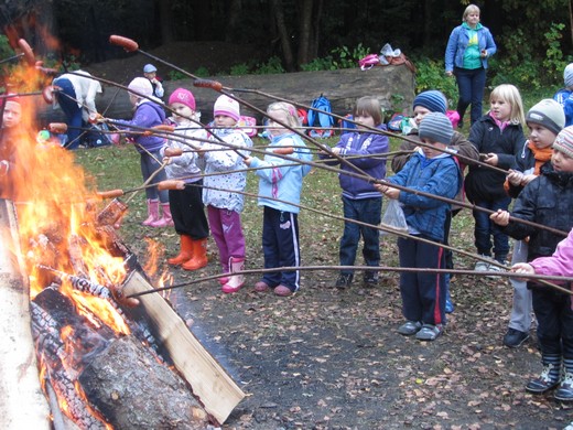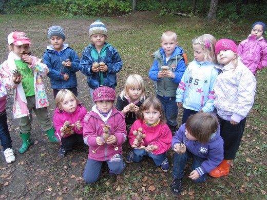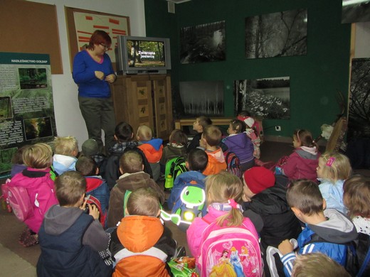 2 października dzieci z oddziałów pięciolatków A i pięciolatków C wraz z wychowawczyniami Małgorzatą Stankiewicz i Ewą Kulikowską udały się na wycieczkę do lasu. Zajęcia rozpoczęły się spotkaniem z leśnik Marzanną Konieczny, która korzystając z atrakcyjnych modeli zwierząt imitujących odgłosy ciekawie opowiadała o życiu ptaków i owadów w lesie. Dzieci poszerzyły swoją wiedzę o leśnych zwierzętach. Następnie przedszkolaki udały się na leśne ścieżki w celu poszukiwania tropów zwierząt. Udało się im wytropić w najniższej warstwie leśnej roślinności pająka i biedronkę. W nagrodę za wytrwałą obserwację przedszkolaki zasłużyły na zabawy przy ognisku i pieczenie kiełbasek. Wielką frajdą okazało się „zmienianie" ziemniaków w leśne zwierzęta i skrzaty. Dużą popularnością cieszył się jeż, którego dzieci wykonały przy pomocy gałązek. Najwięcej jednak radości przyniosły dzieciom integracyjne zabawy ze śpiewem. Wszystkie przedszkolaki wiedzą czym jest las dla zwierząt i ludzi oraz rozumieją konieczność dbania o jego dobro.