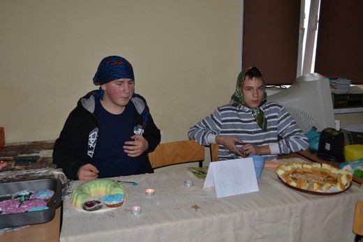 Wczoraj przed południem w Gimnazjum nr1 w Gołdapi odbyły się Andrzejki. Uczniowie mogli kupić babeczkę czy kawałek ciasta za symboliczną złotówkę, dodatkowo otrzymywali też ciekawą wróżbę. Przy każdym stoliku na osoby biorące udział w zabawie czekało coś innego. Wróżki i wróżbici przygotowali bowiem duży wachlarz ofert, od przepowiadania ogólnej przyszłości z kart czy zapałek do przewidywania konkretów, np. wykonywanych w przyszłości zawodów. Zainteresowani mogli również poznać imię swojej miłości jak również dowiedzieć się, „kto, kogo i na ile", czyli kto kogo kocha i jak bardzo.