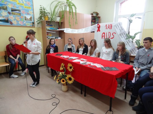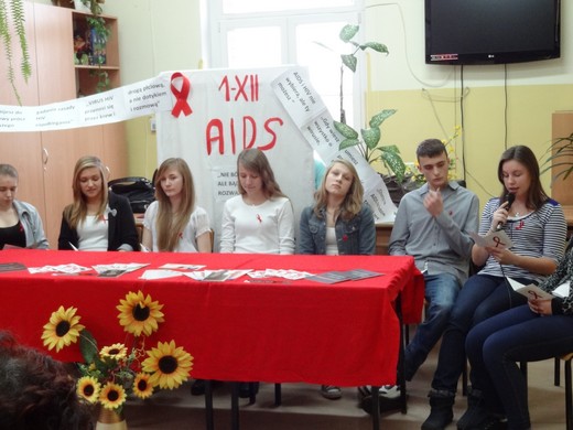W ramach corocznych obchodów Światowego Dnia Walki z AIDS, w Gimnazjum nr 1 im. Noblistów Polskich również uczczono to święto. 3 grudnia w szkolnej świetlicy uczniowie z klas 3e, 2d i 2c pod kierunkiem Haliny Górskiej i Bogdy Bogatkiewicz przygotowali uroczysty apel pt.: „Nie bój się, ale bądź rozważny". Miał on na celu uświadomić wszystkich, jak wielkim zagrożeniem jest ta AIDS, co należy o tej chorobie wiedzieć i jak należy z nią walczyć. Oprócz tego młodzież pięknie recytowała wiersze własnego autorstwa nawiązujące do tematyki AIDS. Na uroczystości obecni byli dyrektorzy gimnazjum, pracownik Państwowej Inspekcji Sanitarnej, nauczyciele oraz uczniowie.